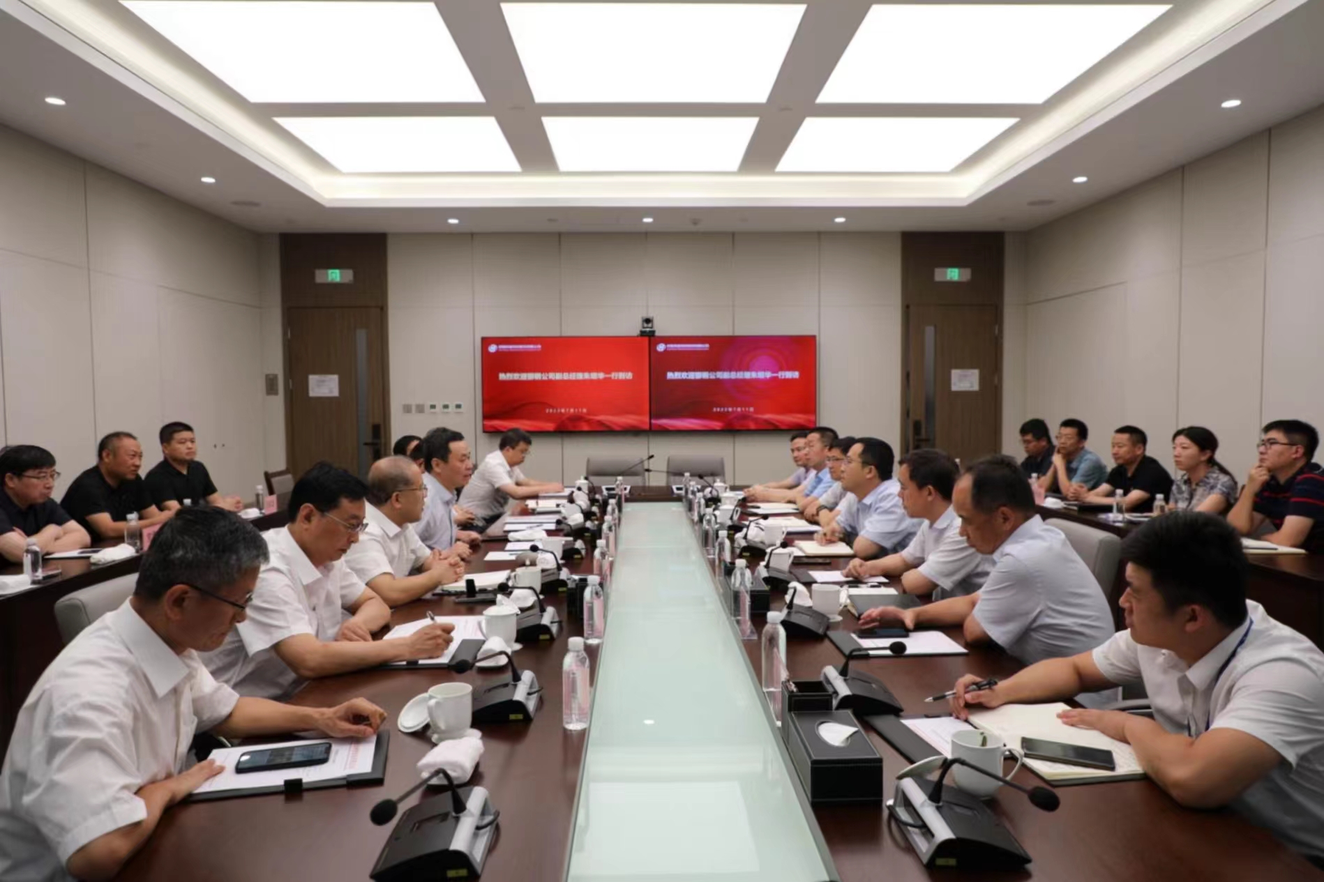 会前,,,, ,,朱坦华一行旅行了中国物流集团科技立异展、调理中心。。。。。。。轨道集团对数字钢轨建设效果、数字质监应用情形举行了专题汇报。。。。。。。